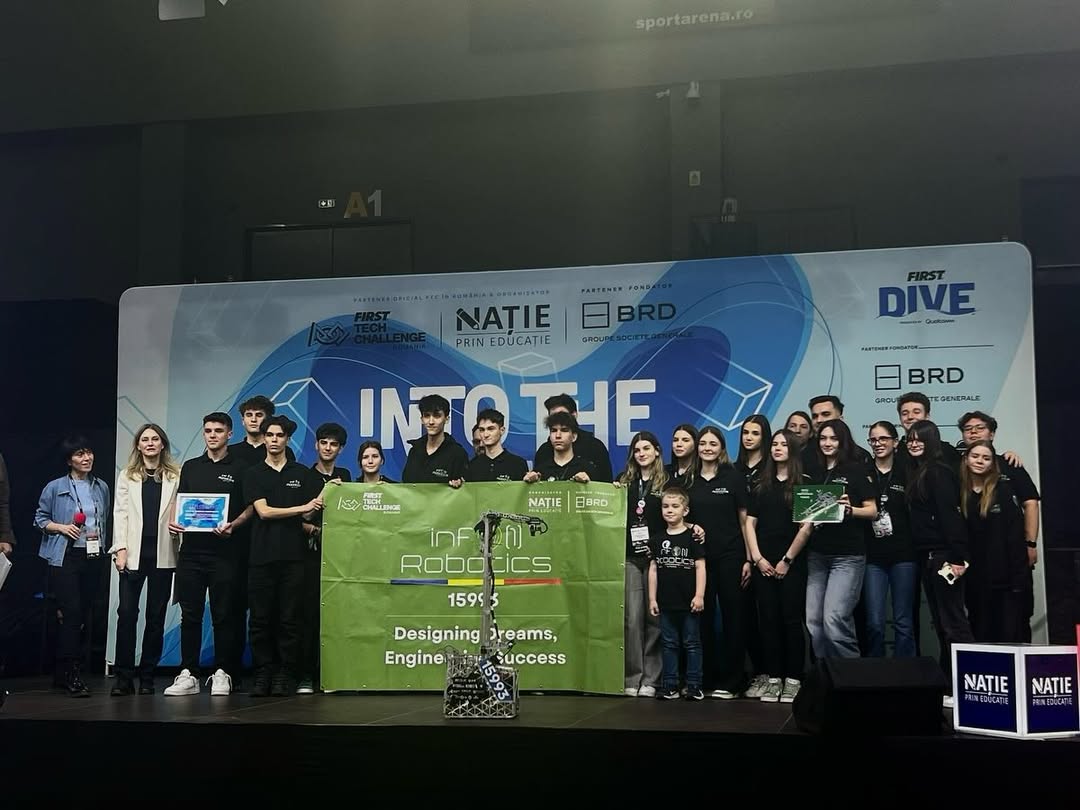 We are the infO(1)Robotics FTC Team – 15993 – proudly representing “Ion Luca Caragiale” High School from Ploiești, Romania. Founded in April 2018 by our computer science teacher, Mrs. Dana Lica, our team has been on an incredible journey ever since. Now in its 8th FTC season, our team consists of 15 members, 5 special volunteers, 3 mentors, 3 peer mentors, and over 40 volunteers. Together, we strive for excellence, innovation, and teamwork. Meet our team here and discover the driving force behind infO(1)Robotics.
